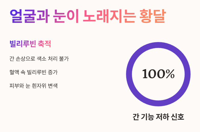 - 눈의 흰자위나 얼굴 피부가 노랗게 변하는 황달은 간 건강의 적신호예요.