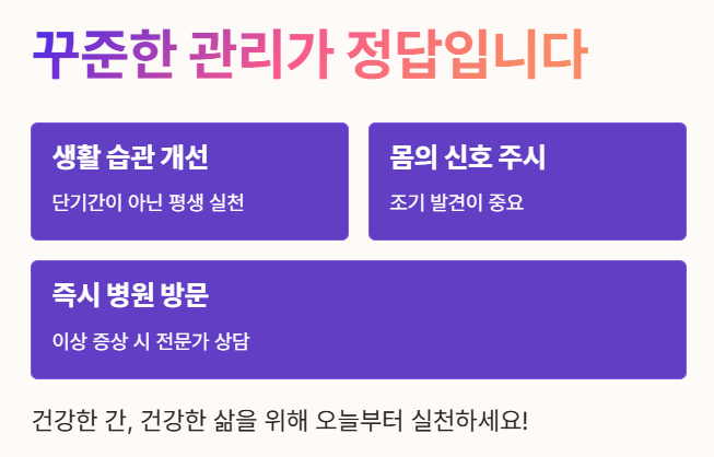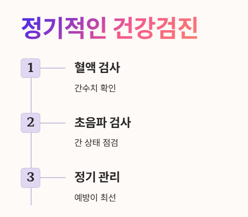 증상이 없더라도 정기적인 혈액 검사로 간수치를 확인하고 간 건강을 미리 챙기는 지혜가 필요해요.