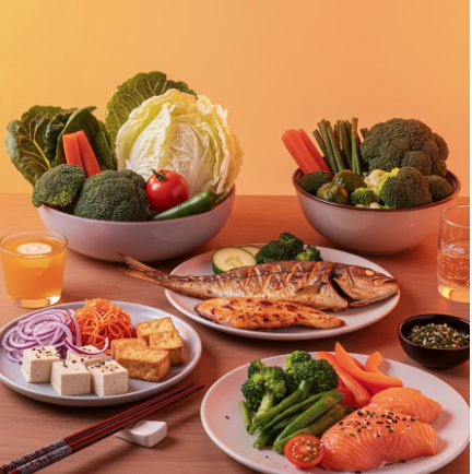 1) 신선한 채소와 단백질 위주 식단 🥦