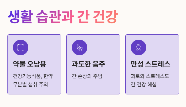 당연히 잦은 음주는 간 손상의 주범이며, 만성적인 스트레스와 과로 역시 간 건강을 해치는 요인이 된답니다. 😫