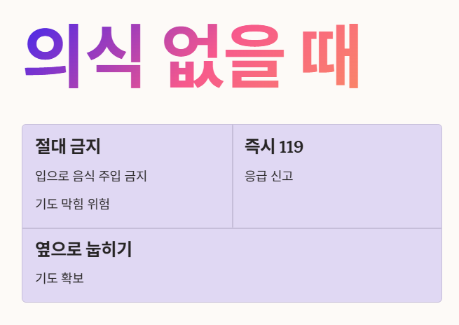 환자가 의식이 없다면 절대 입으로 무언가를 주려고 해서는 안 돼요!