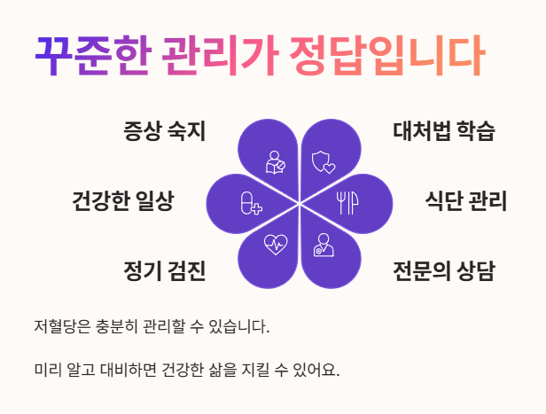 저혈당은 갑자기 찾아올 수 있지만, 증상과 대처법을 미리 알아두면 충분히 관리할 수 있는 질환이랍니다. 🏃♂️