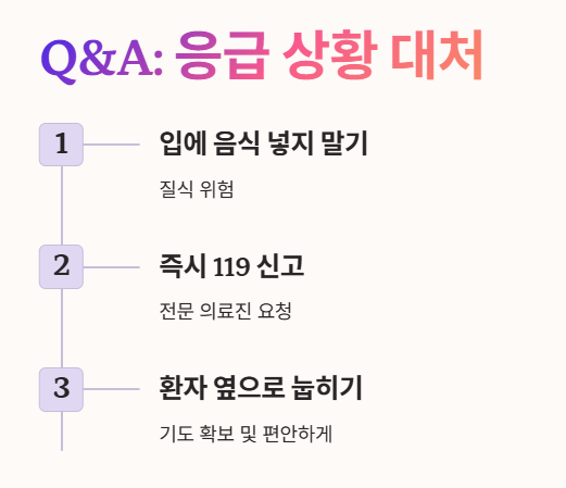 - 의식 소실: 가장 위험한 상태로, 의식을 잃고 쓰러지게 됩니다. 즉시 119에 신고해야 해요! 🚑
