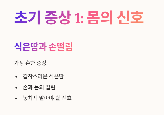 물론, 몸에 이상 신호가 느껴진다면 전문의와 상담하는 것이 가장 중요하다는 점 잊지 마세요! 🤗