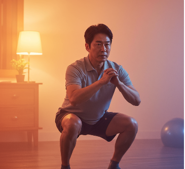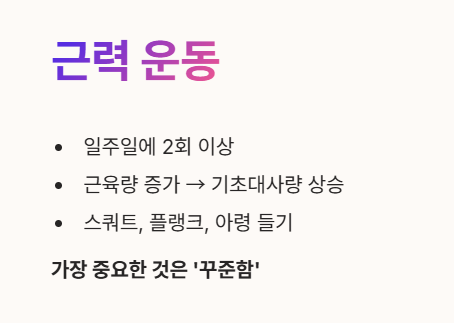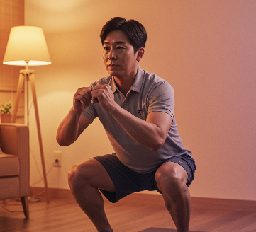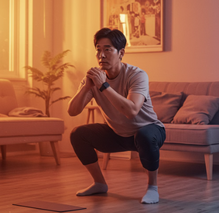 - 스쿼트, 플랭크, 가벼운 아령 들기 등 집에서도 쉽게 할 수 있는 운동부터 시작해 보세요.