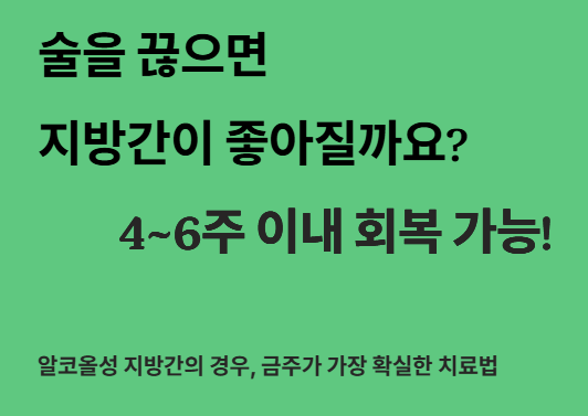 - 술만 끊어도 보통 4~6주 이내에 간에 쌓였던 지방이 빠져나가고 정상으로 회복될 수 있습니다.