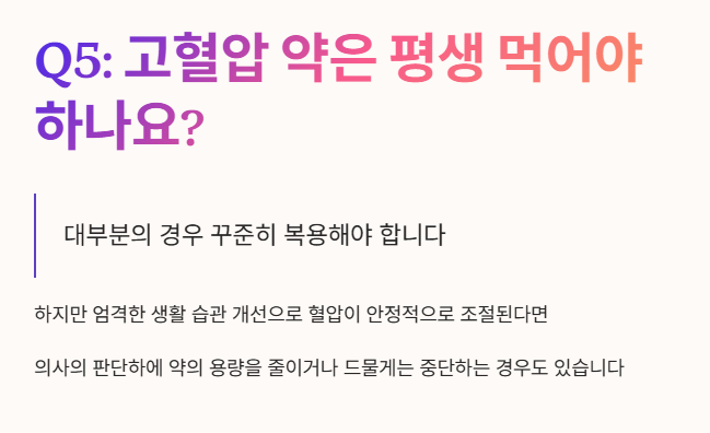 Q5: 고혈압 약은 한 번 먹으면 평생 먹어야 하나요?